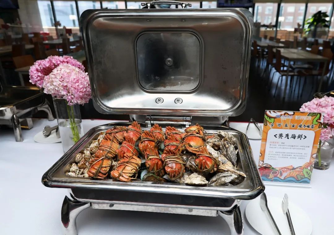 刚过11点,餐线上已经摆得满满当当,四方特色美食荟萃一堂,食堂里香气氤氲,一道道精致的菜品煞是诱人!