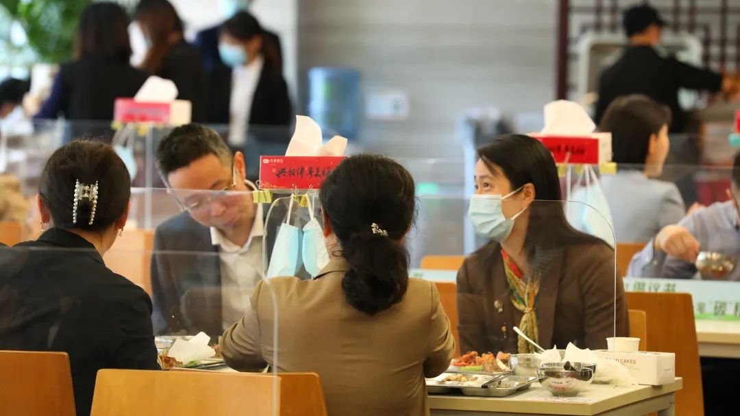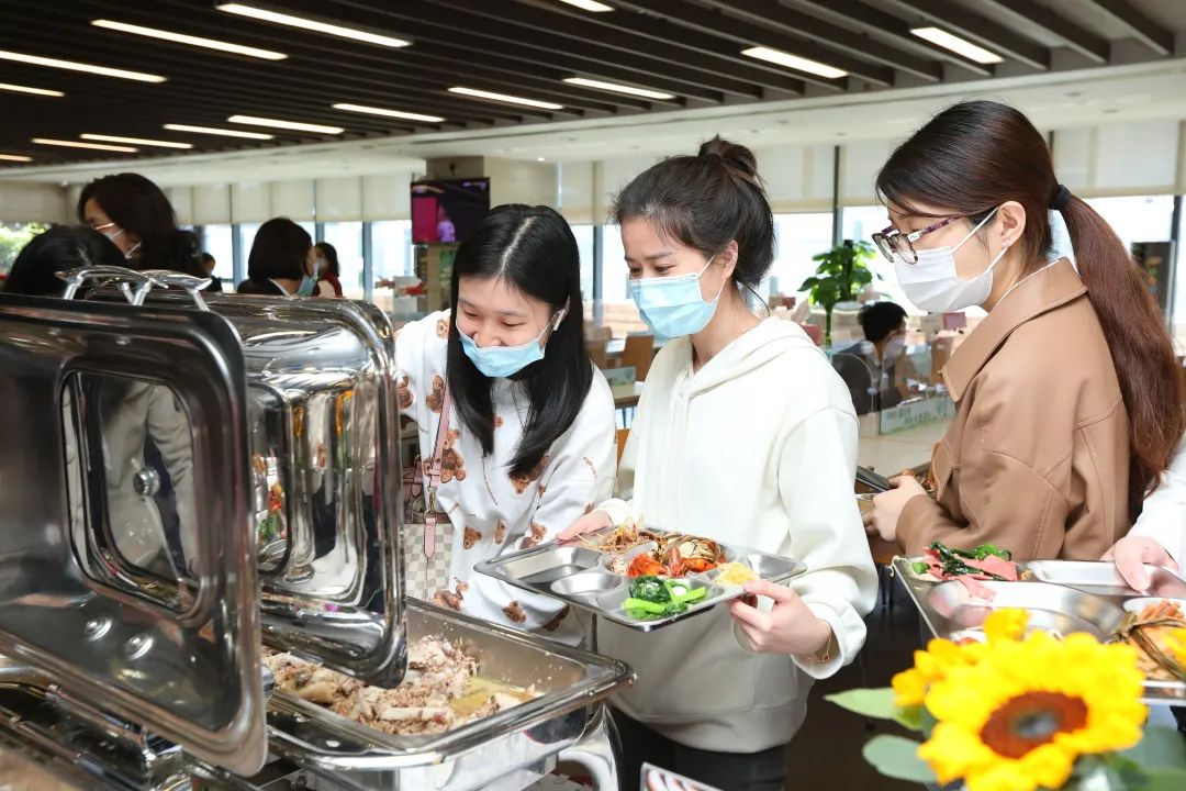 排队取餐后,每个人的餐盘里都盛满了心仪的美食,三五结队落座后,在侃侃而谈中享受这个珍贵的午餐“食”刻。